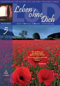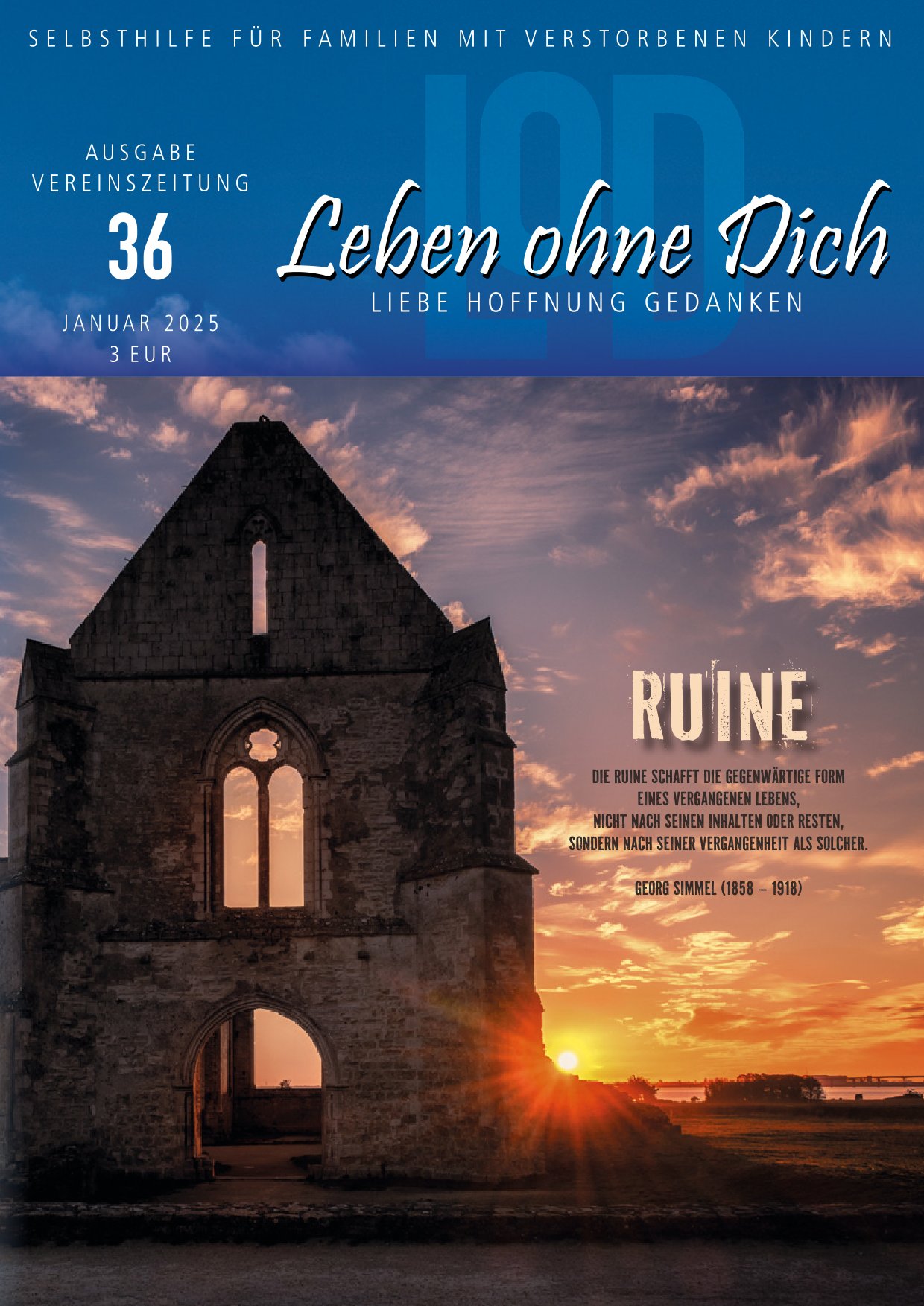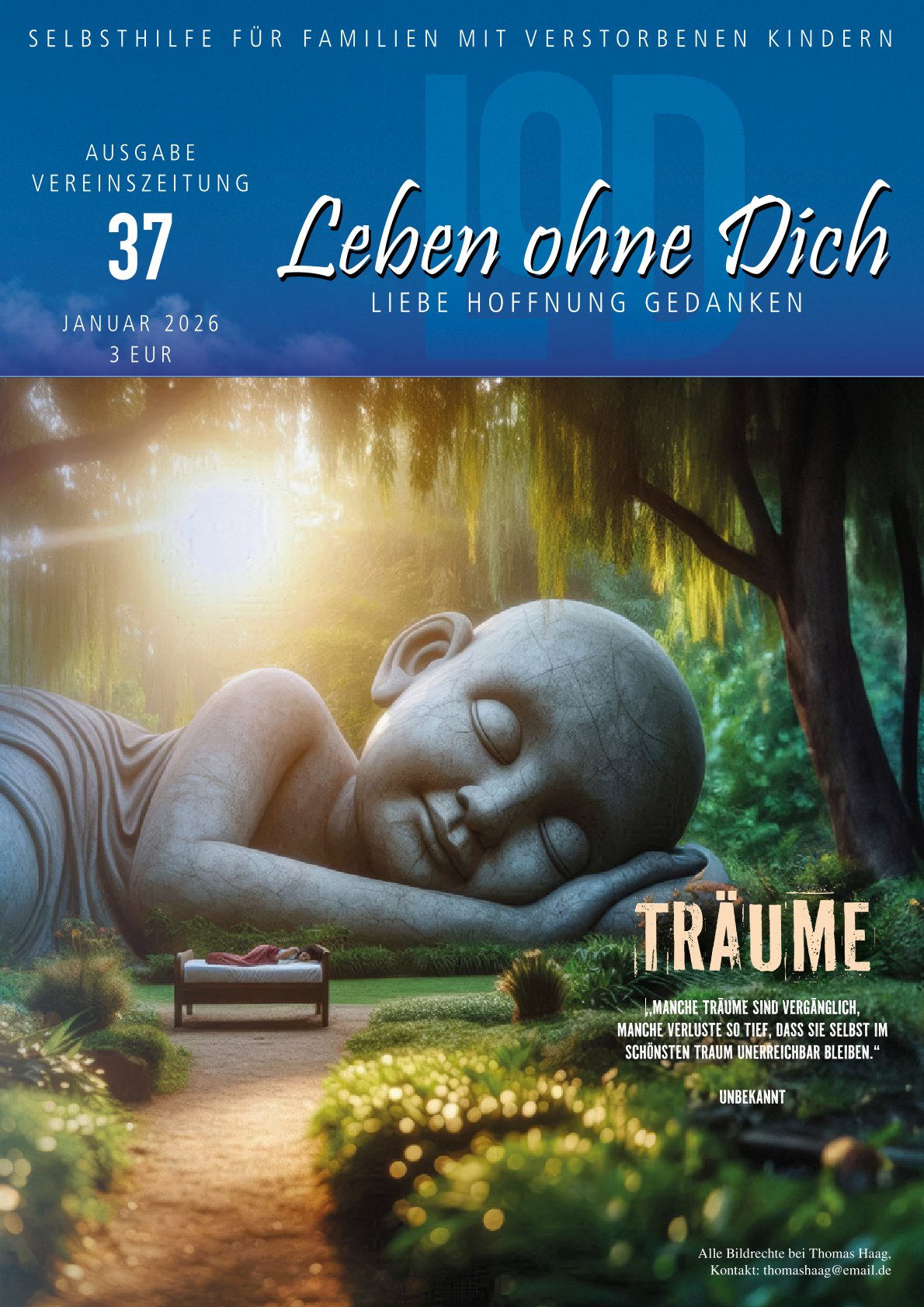 Mit diesem Medium möchten wir Euch regelmäßig über die Aktivitäten rund um „Leben ohne Dich“ und den Verein informieren, aber auch durch Beiträge von betroffenen Eltern und Geschwistern Anstöße zu Trauerwegen aufzeigen und Erfahrungen wiedergeben. Auch in dieser Zeitung leben unsere Kinder und Geschwister weiter, so wie in unseren Herzen. Die Zeitung ist für Mitglieder im Verein Leben ohne Dich e.V. kostenlos.